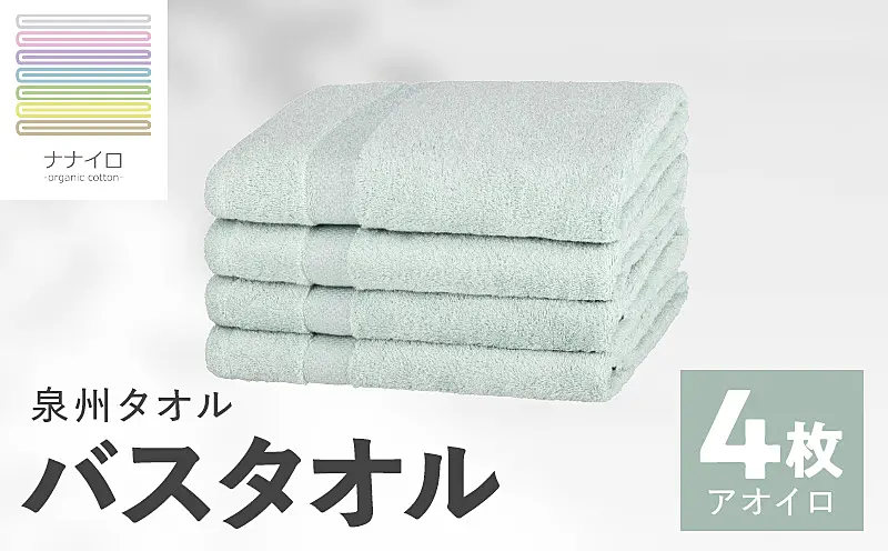 015B466 ナナイロ バスタオル 4枚セット(アオイロ)【オーガニック 国産 日本製 泉州タオル 老舗タオルメーカー】