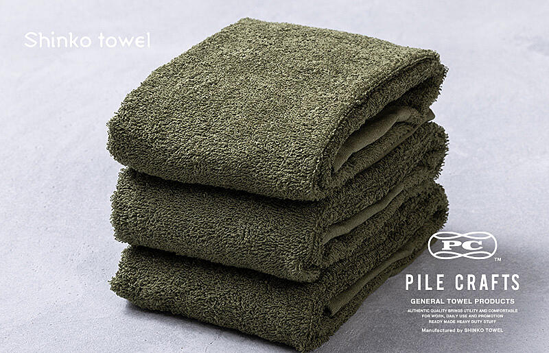 G2642 PILE CRAFTS 3枚組 オリーブ フェイスタオル