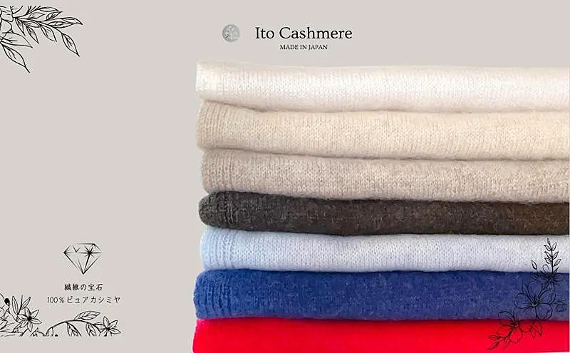 - 高級カシミヤ100%、紡績・加工:泉佐野市