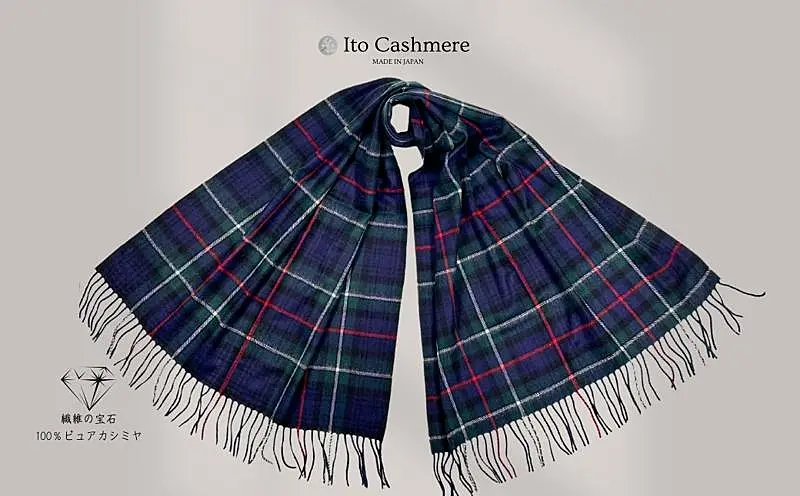 G3606 100%ピュアカシミヤ・大判ストール チェック柄 Tartan フリンジ付き