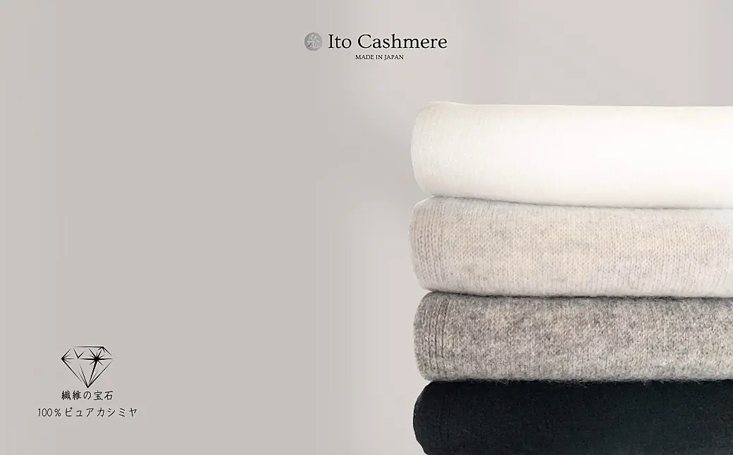 - 高級カシミヤ100%、紡績・加工:泉佐野市