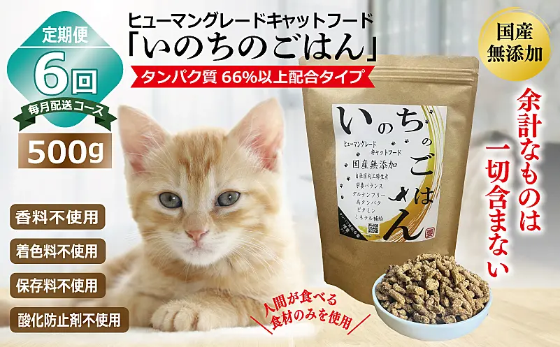 099Z333 【定期便】国産 無添加 キャットフード「いのちのごはん」500g×全6回【毎月配送コース】