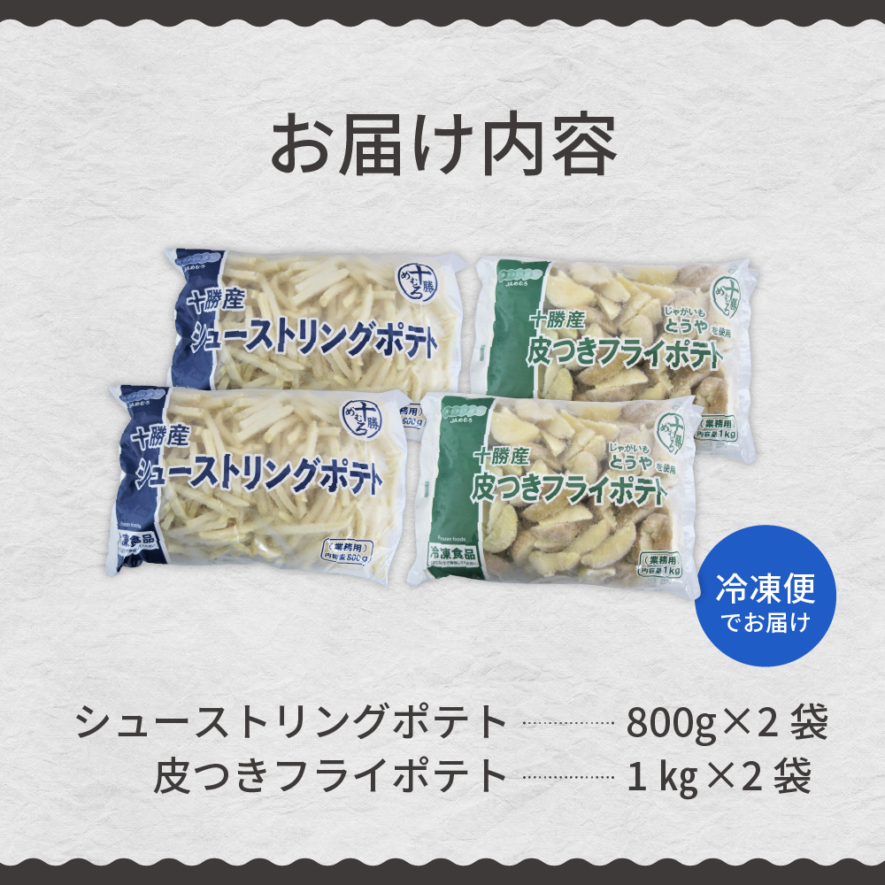 北海道十勝芽室町 シューストリングポテトと皮付きフライポテト 各2袋セット me003-061c
