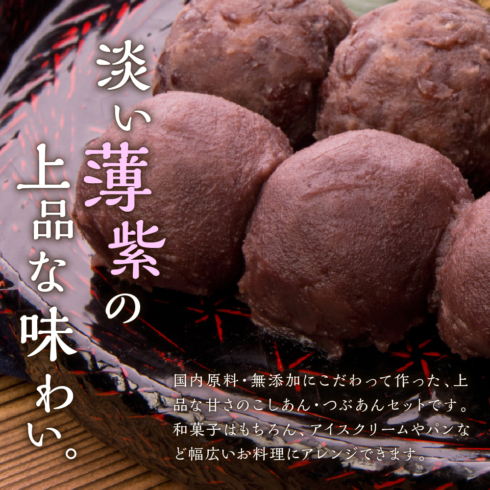 こしあんとつぶあん3袋ずつのセットで、さまざまなお料理でお楽しみいただけます!
