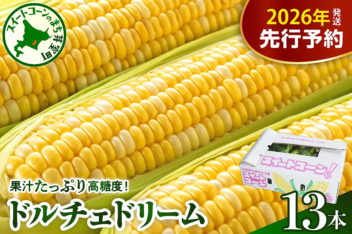 【2026年分先行予約】北海道十勝芽室町 スイートコーン ドルチェドリーム 13本 me062-001c-26