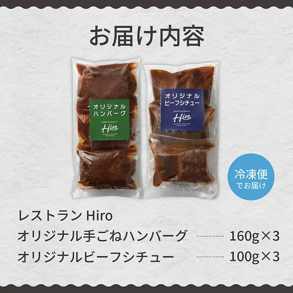 北海道十勝芽室町 手ごねハンバーグ160g×3個 ビーフシチュー100g×3個 me026-008c