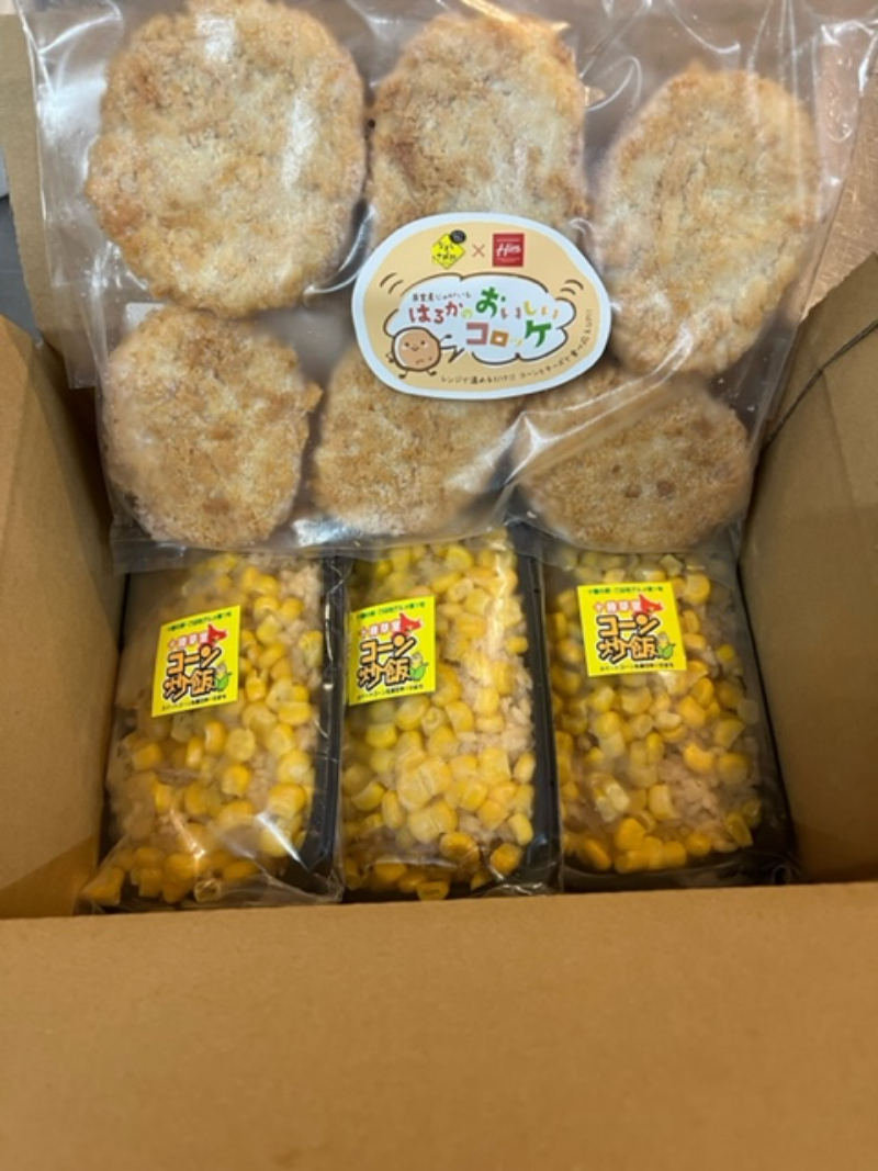 お店の味をそのままお届け!コーン炒飯とはるかコロッケのセットです。
