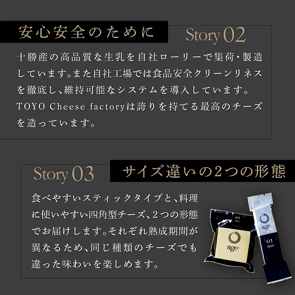 age(エイジ)は構想や準備、開発に沢山の時間を費やして出来たチーズブランドです。