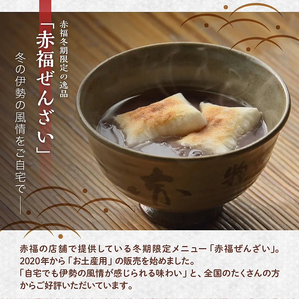伊勢にお越しいただけない方も、ご自宅でお手軽に、赤福の店の味をお楽しみください。北海道産の高品質な小豆を使用しており、赤福が自信を持ってお薦めする冬の大人気商品です。