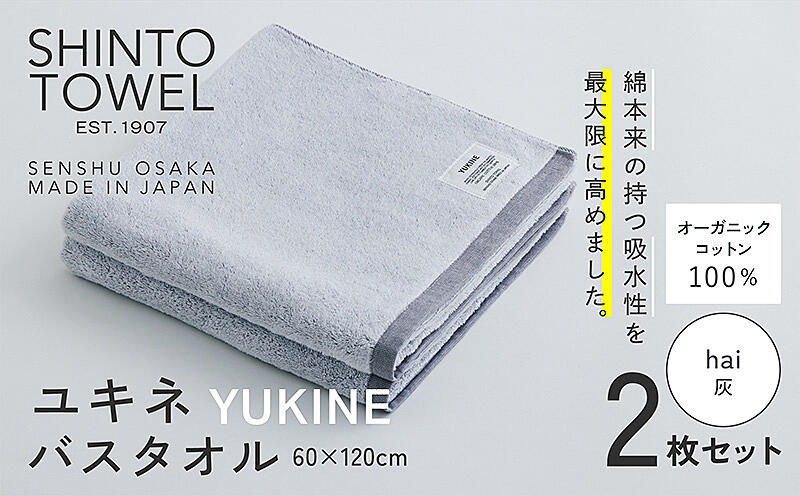 099H3992-1 SHINTO TOWEL「ユキネ・バスタオル」hai(灰)2枚セット オーガニックコットン100%