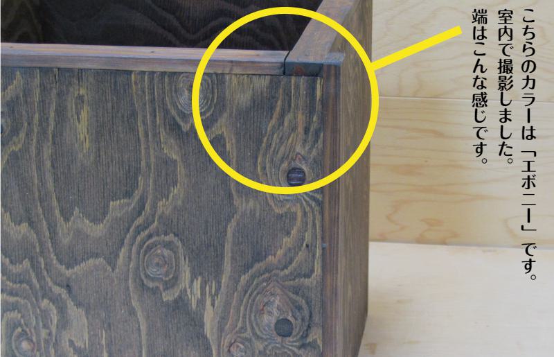 木目によって濃く染まったり薄く染まったりとても個性的な鉢カバーが出来ました!