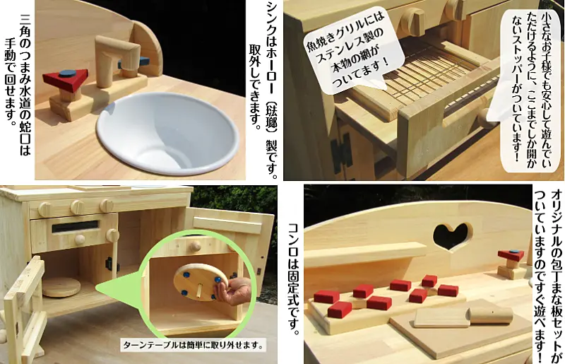 099H2154 手作り木製ままごとキッチン魚焼きグリルの付いたGHK