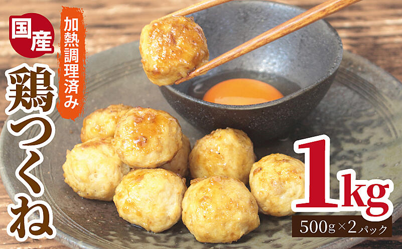 G2906 【調理済み/簡単調理】国産鶏使用 つくね 1kg(500g×2P)【泉州たまねぎ入り 冷凍 惣菜 おかず 弁当】