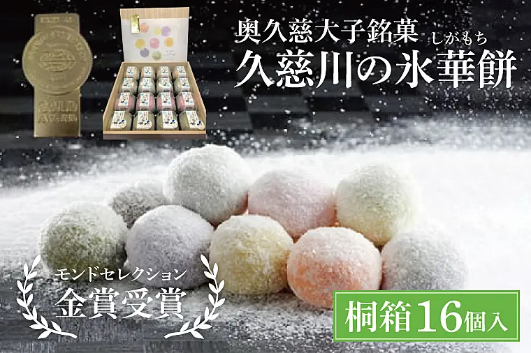 奥久慈大子銘菓「久慈川の氷華餅(しがもち)」【桐箱16個入】モンドセレクション金賞受賞 和菓子 生菓子 餅菓子 (BF011)