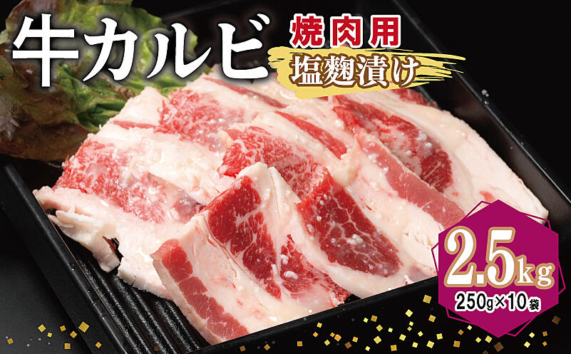 G3397 牛カルビ焼肉用 塩麹漬け 合計2.5kg【味付け 小分け 焼くだけ 簡単調理 BBQ 牛肉 250g×10袋】