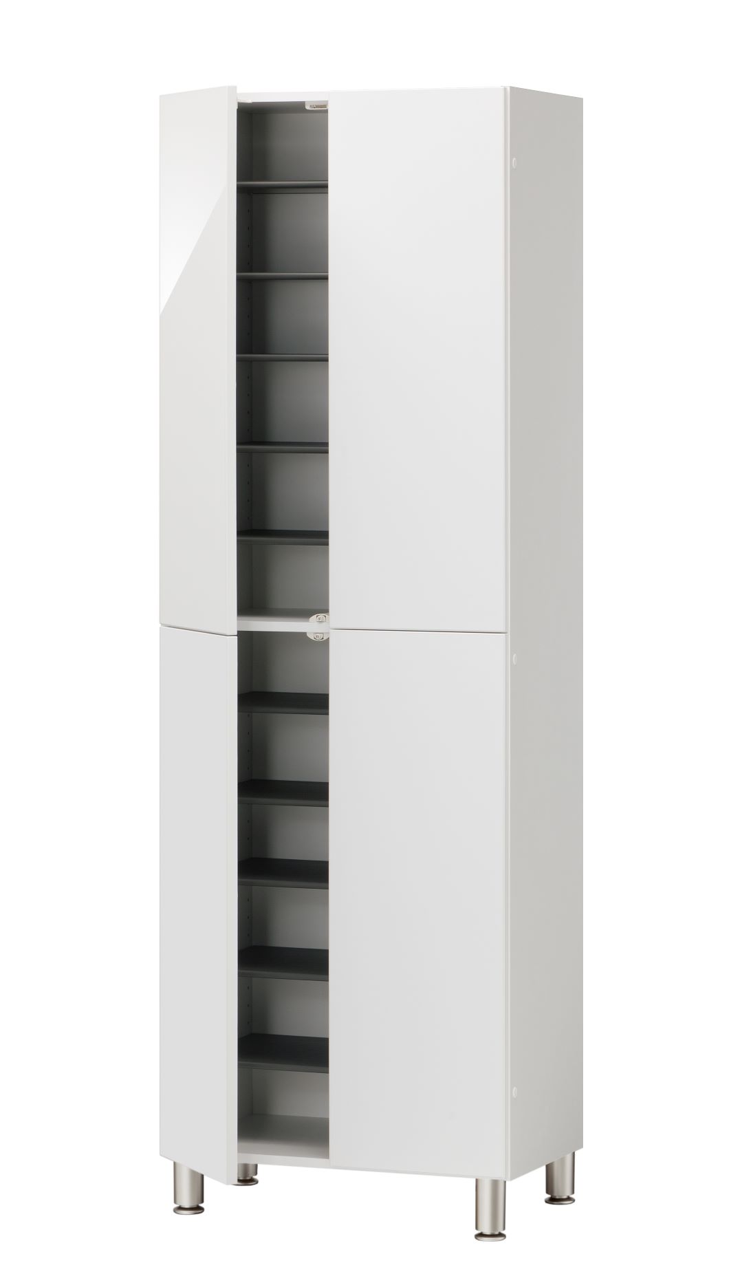 また、棚板は全てお好みに合わせて3㎝ピッチで高さ調節できるので、スニーカーからブーツまで収納可能です。