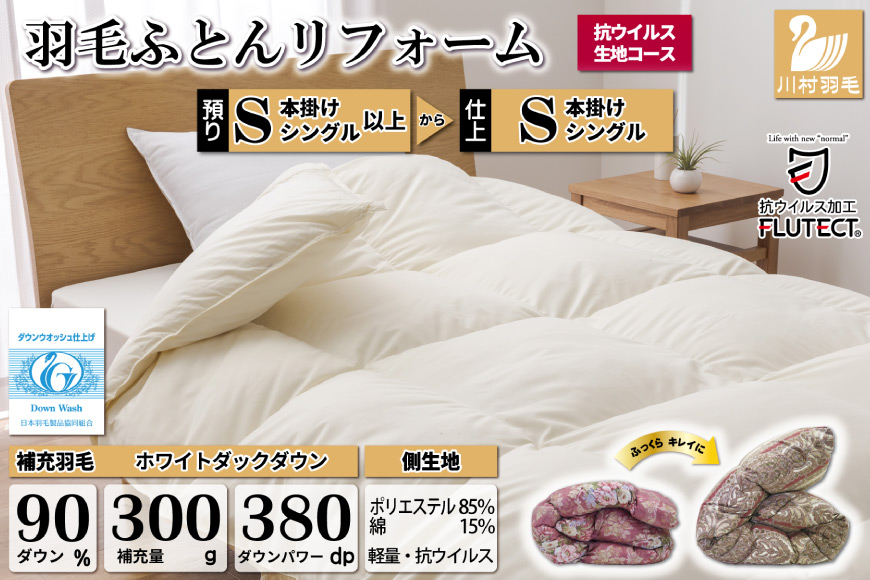 抗ウイルス 羽毛布団リフォーム シングル 【ホワイトダックダウン90%】 仕立て直し 【無地 アイボリー】[20743583]