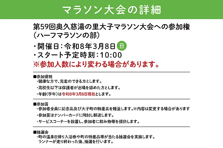 - 第59回奥久慈湯の里大子マラソン大会への参加権【令和8年3月8日(日)開催】