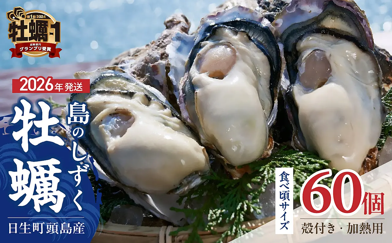 【 2026年発送 】【厳選!】日生頭島殻付牡蠣「島のしずく」(加熱用・食べ頃サイズ60個)