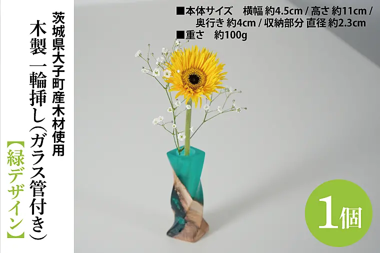 木製 一輪挿し(ガラス管付き)【緑デザイン】|茨城県産 大子町 花瓶 フラワーベース インテリア 一輪挿し (BH018)