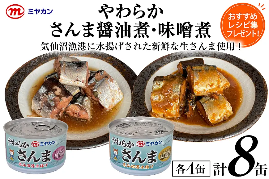 缶詰 やわらかさんま 醤油煮 & 味噌煮 各4缶 計8缶 [ミヤカン 宮城県 気仙沼市 20564175]
