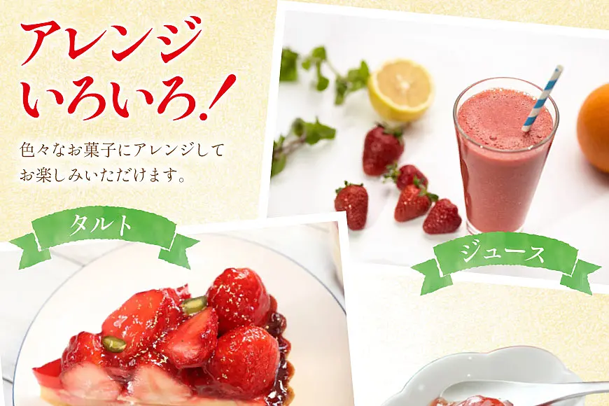 ジャム・スムージー・タルト・ババロアなど色々なお菓子にアレンジしてお楽しみいただけます。