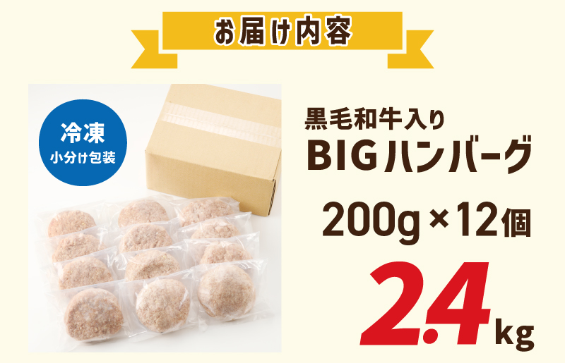 - 黒毛和牛入り BIGハンバーグ 200g×12個(個包装)