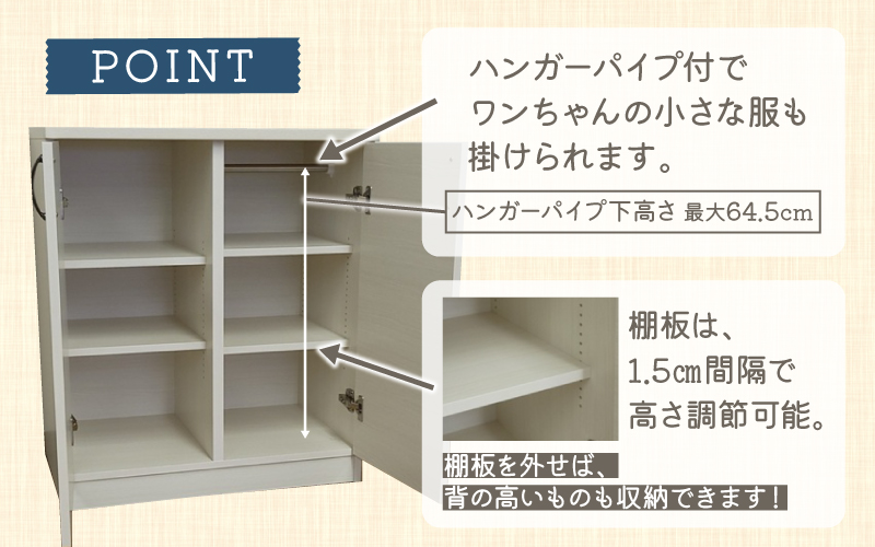 ・ハンガーパイプ付でワンちゃんの小さな服も掛けられます