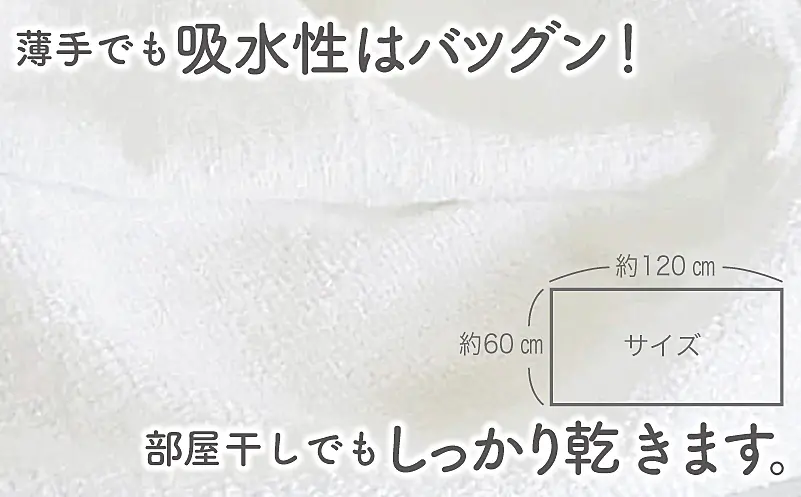 ・乾きやすくて水分もしっかり取ってくれます。もうこのバスタオル以外使えなくなりました。