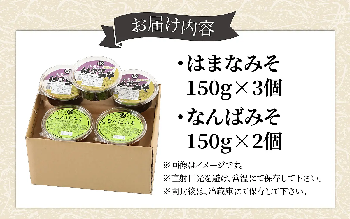 越前大野 山元醤油の「はまなみそ3個」+「なんばみそ2個」計5個【2種食べ比べセット】