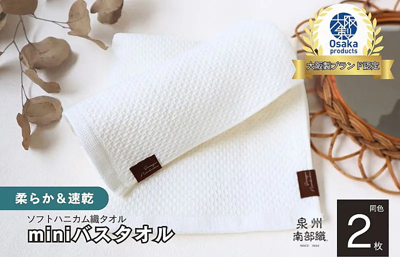 G1918 【ソフトハニカム】泉州南部織 ミニバスタオル 2枚(ホワイト)+ソフトハニカム織ハーフハンカチ1枚