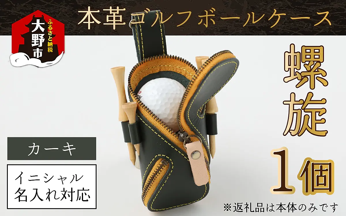 【6色から選べる】本革ゴルフボールケース 螺旋 カーキ【イニシャル名入れ対応】 [B-024003_01]