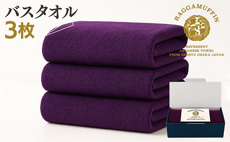 099H3801 高級泉州タオル ラガマフィン バスタオル パープル 3枚