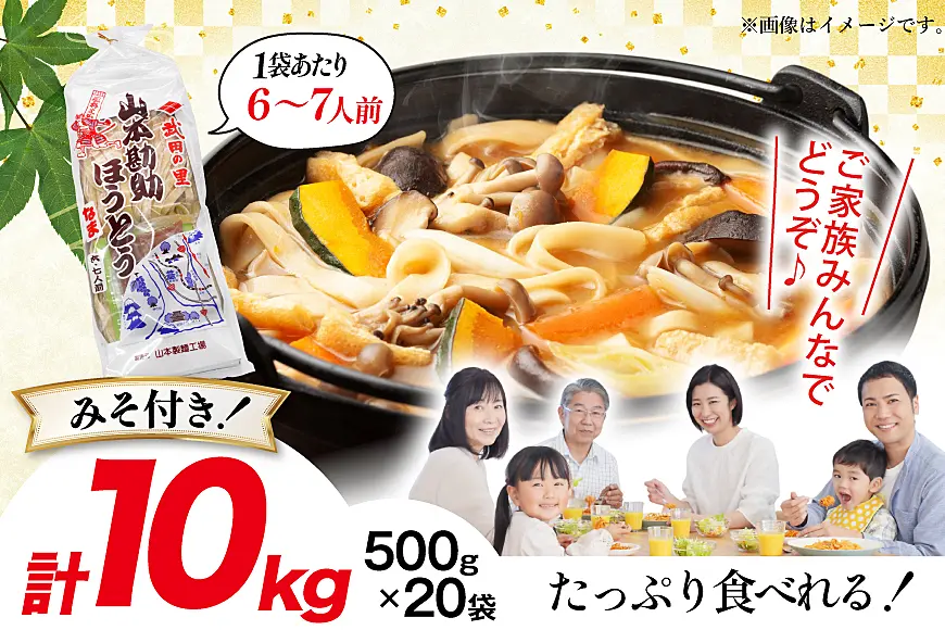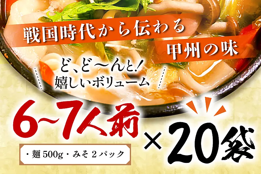 麺 【大容量】 山梨名物 勘助ほうとう 500g (6~7人前) みそ付き(2パック) ×20袋 山本製麺所 20743515