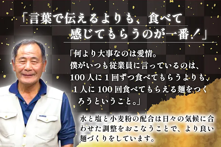 「100人の人に1回食べてもらうより、1人の人に100回食べてもらえる麺づくり」を大事にしています。
