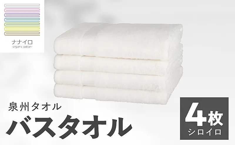 015B469 ナナイロ バスタオル 4枚セット(シロイロ)【オーガニック 国産 日本製 泉州タオル 老舗タオルメーカー】
