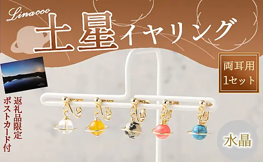 鹿児島県 天城町 土星 イヤリング 水晶 1個 天然石ビーズ パワーストーン 両耳用 サージカルステンレス 幅2cm