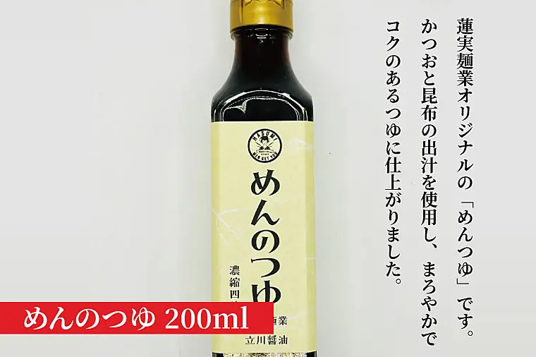 オリジナルめんつゆは、かつおと昆布の出汁を使用した、まろやかでコクのあるつゆです。