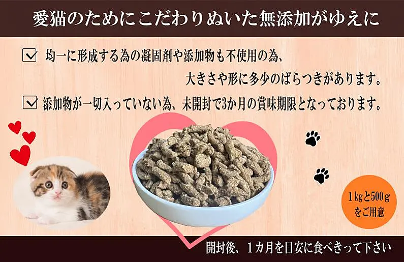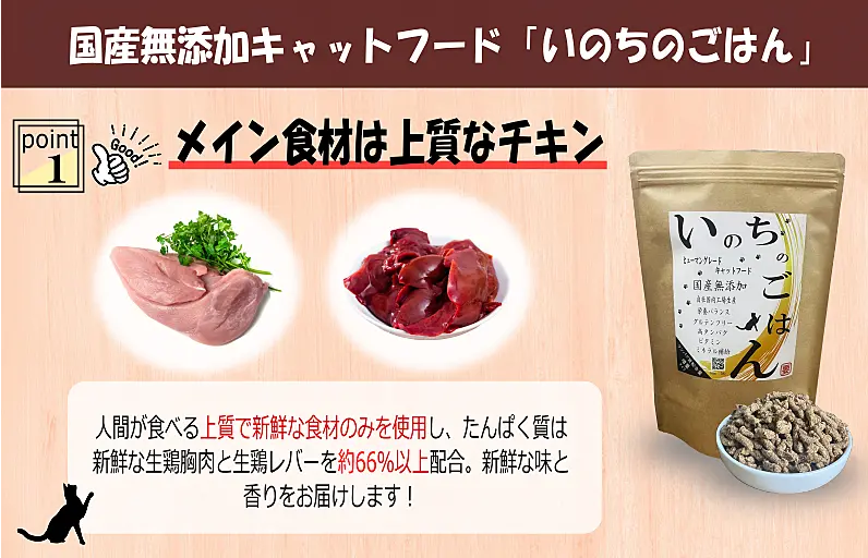 099H3598 国産無添加 キャットフード 500g「いのちのごはん」タンパク質 66%以上配合タイプ