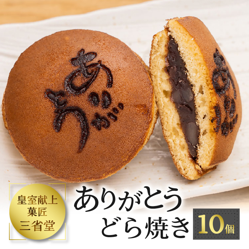 三省堂特製『ありがとうどら焼き』10個入 北海道産小豆使用 無添加贅沢和菓子(VYD)B-931