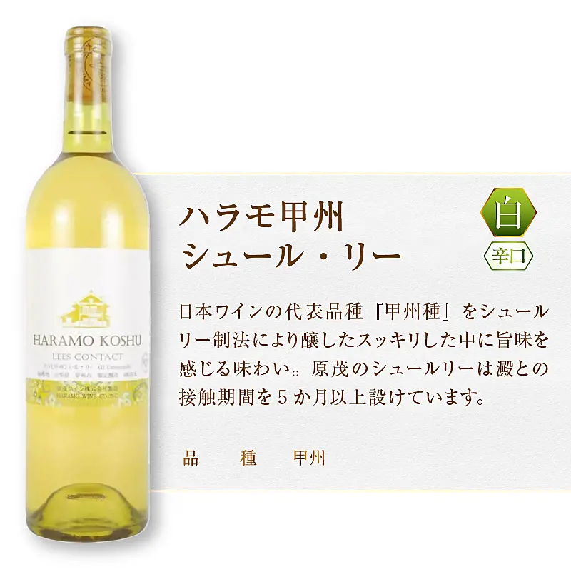 日本ワインの代表品種『甲州種』をシュールリー制法により醸したスッキリした中に旨味を感じる味わい。原茂のシュールリーは澱との接触期間を5か月以上設けています。