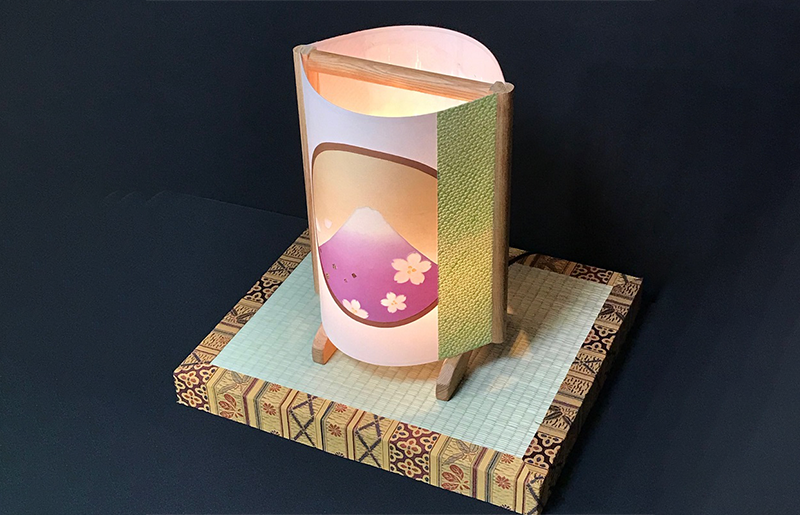 099H822 着物生地で作ったおしゃれな行灯(あんどん) 丸窓ジャパン