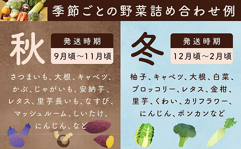 〇秋の野菜の例(発送時期:9月頃~11月頃)