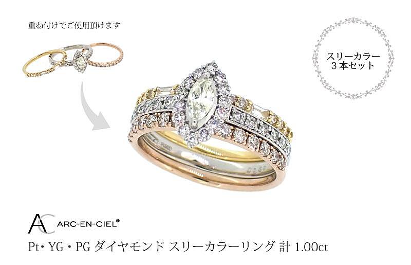 J034-4 アルカンシェル スリーカラーダイヤリング(計 1.0ct)