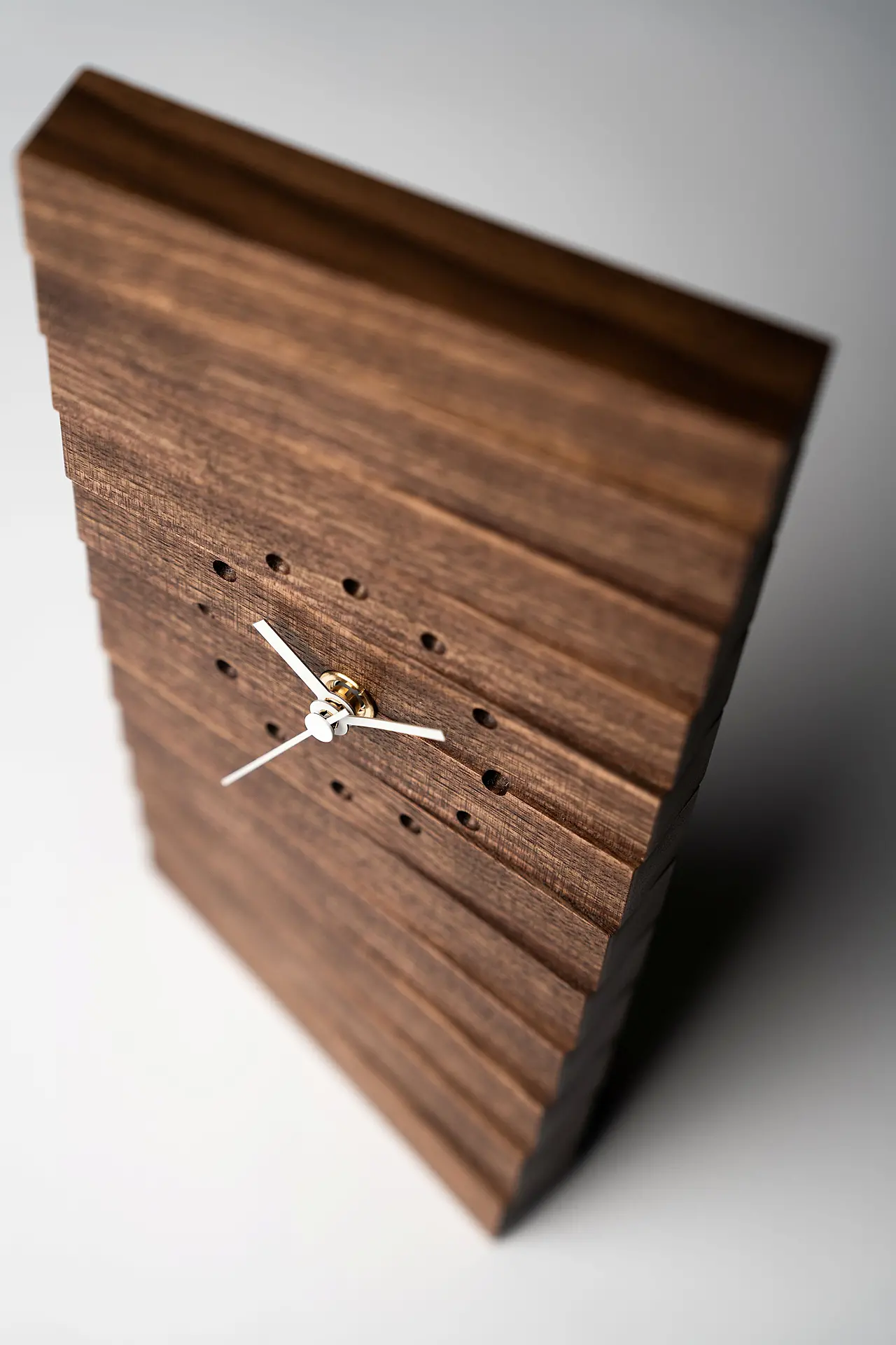 実は他製品の製作で出た端材をさらに活用して生まれたのがこの置き時計。同シリーズの掛け時計(大)とのライン使いもおすすめです。