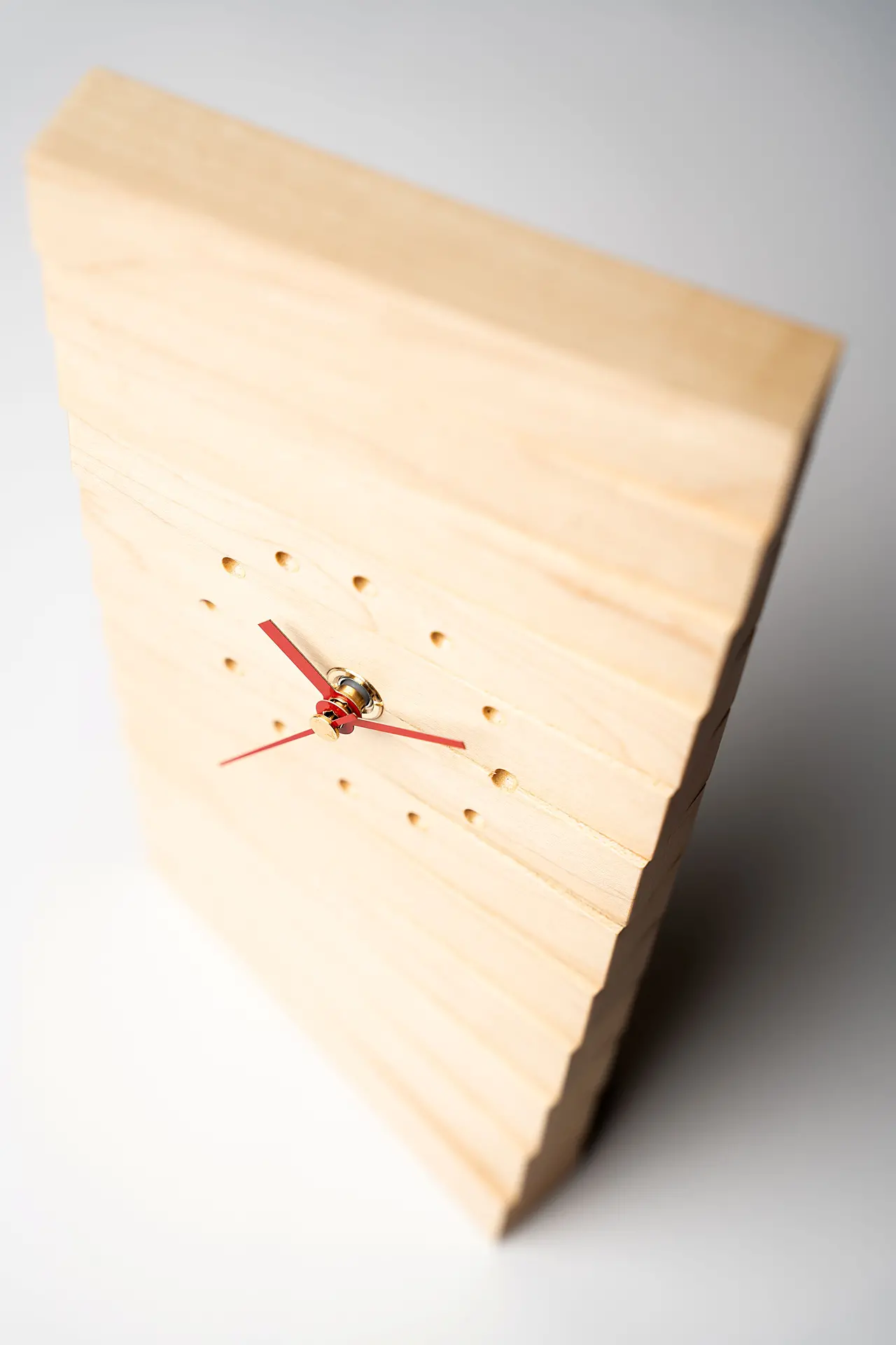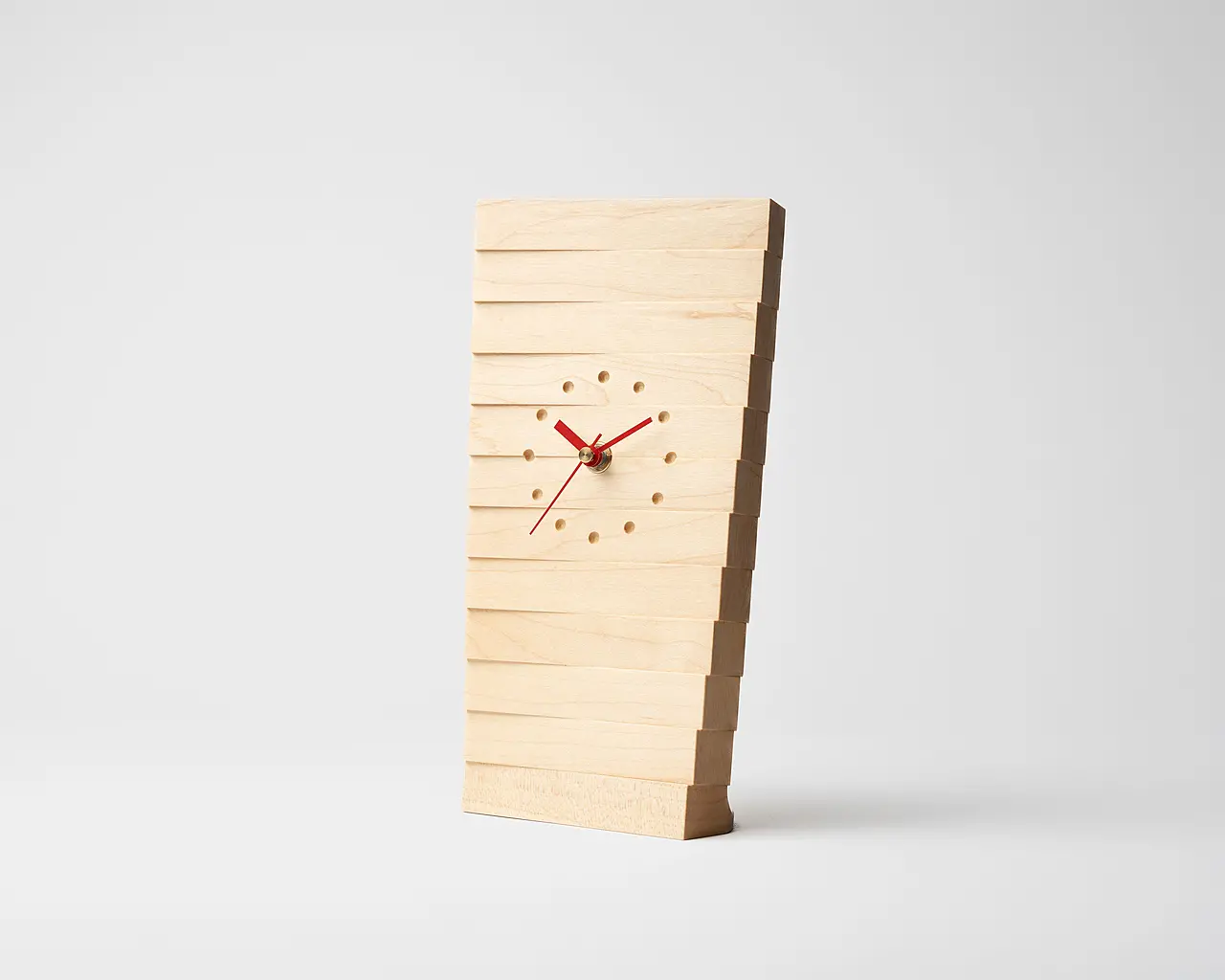 実は他製品の製作で出た端材をさらに活用して生まれたのがこの置き時計。同シリーズの掛け時計(大)とのライン使いもおすすめです。