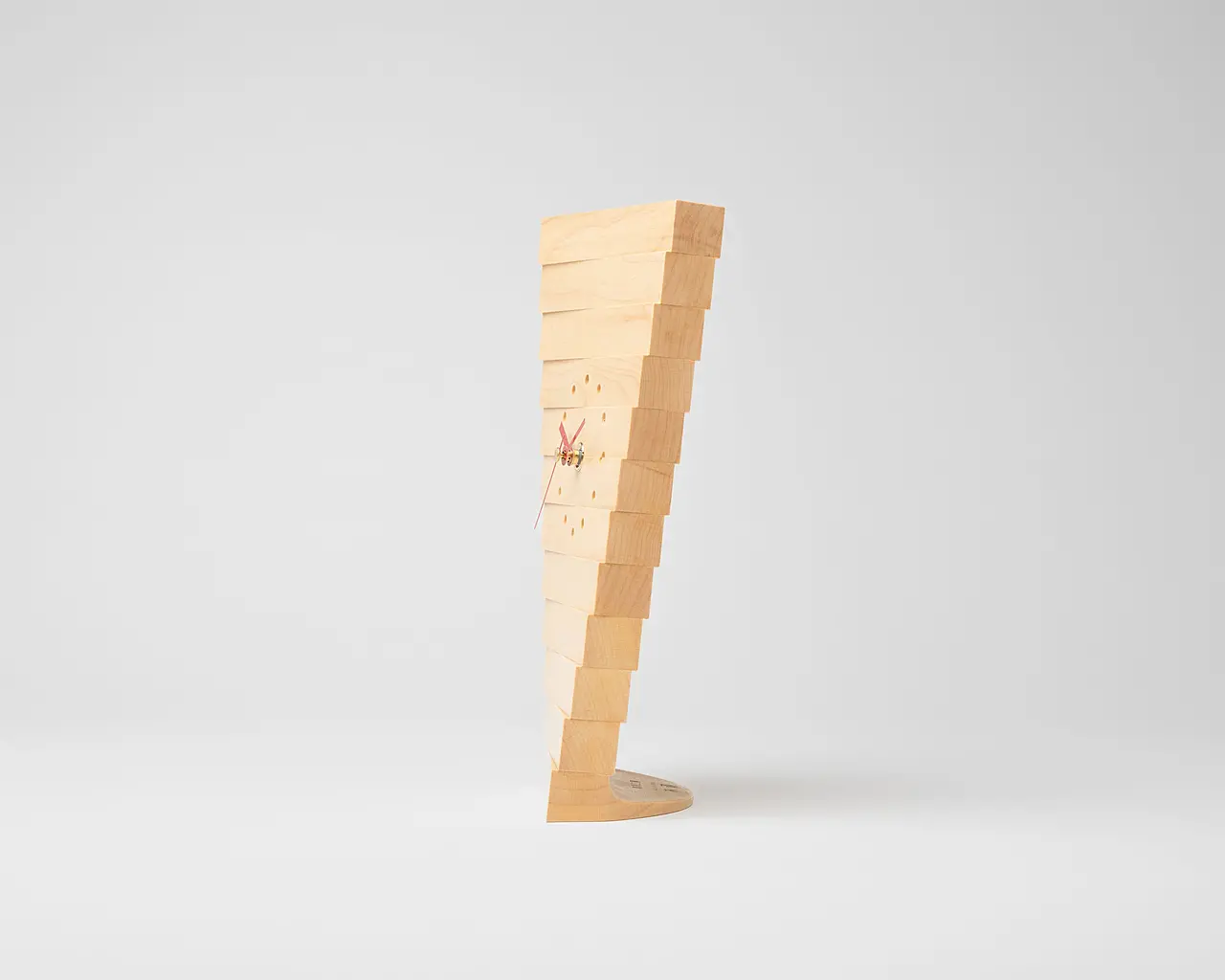 螺旋上に連なるシンプルなデザインはどんな空間にも自然と溶け込み、スイープセコンドの針は、遠目からでもはっきりと時刻が分かるよう樹種毎にこだわりの色を選定しています。