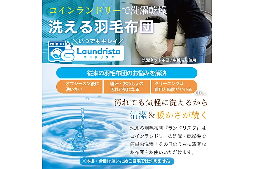タンブラー乾燥に対応していますので、ご自宅やコインランドリーで洗濯可能です。