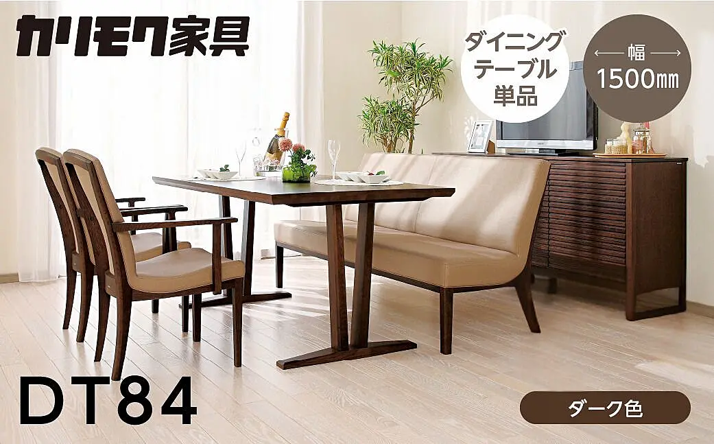 カリモク家具【特別仕様:岐阜県飛騨市産のナラ材使用】ダイニングテーブル(幅1500)/DT84モデル ダーク色