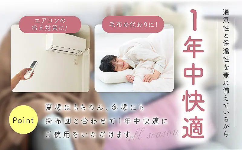 夏場はもちろん、冬場にも掛布団と合わせて1年中快適にご使用をいただけます。